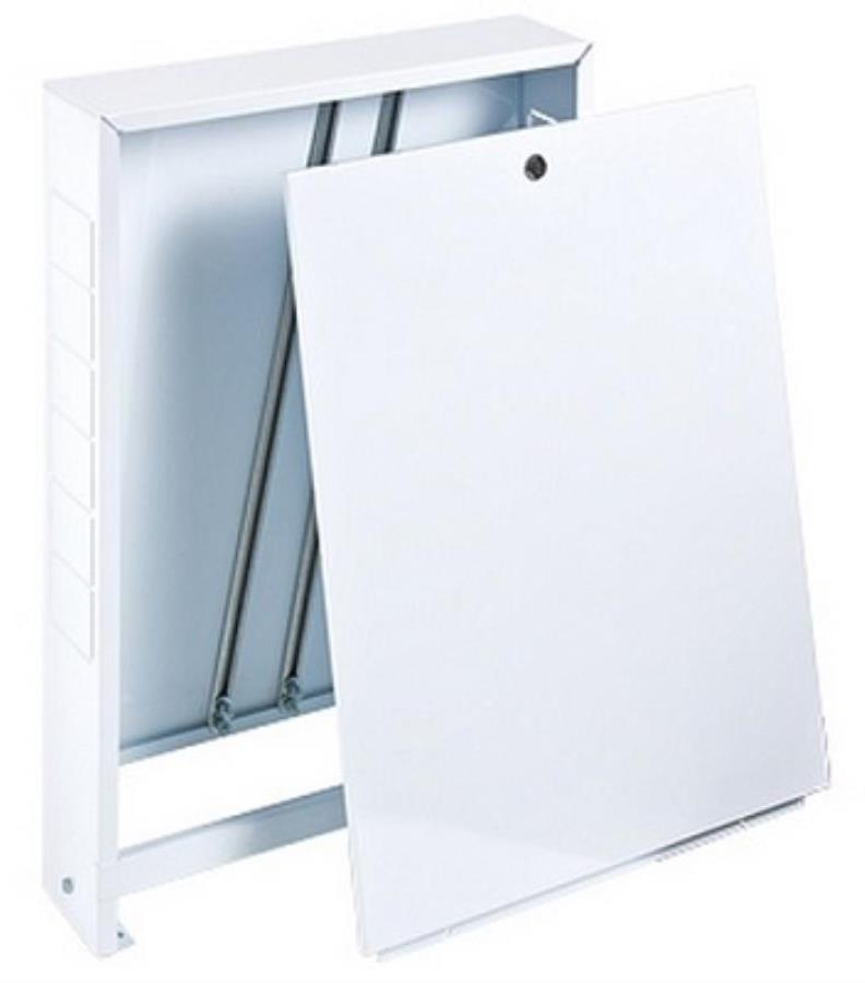 - Корпус коллекторного шкафа изготовлен из стали, на которую нанесен слой антикоррозионной фосфатной плёнки, а затем осуществлена покраска при помощи порошковой краски RAL 9016
